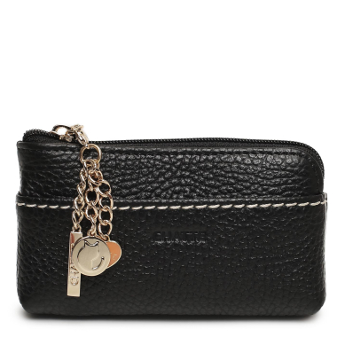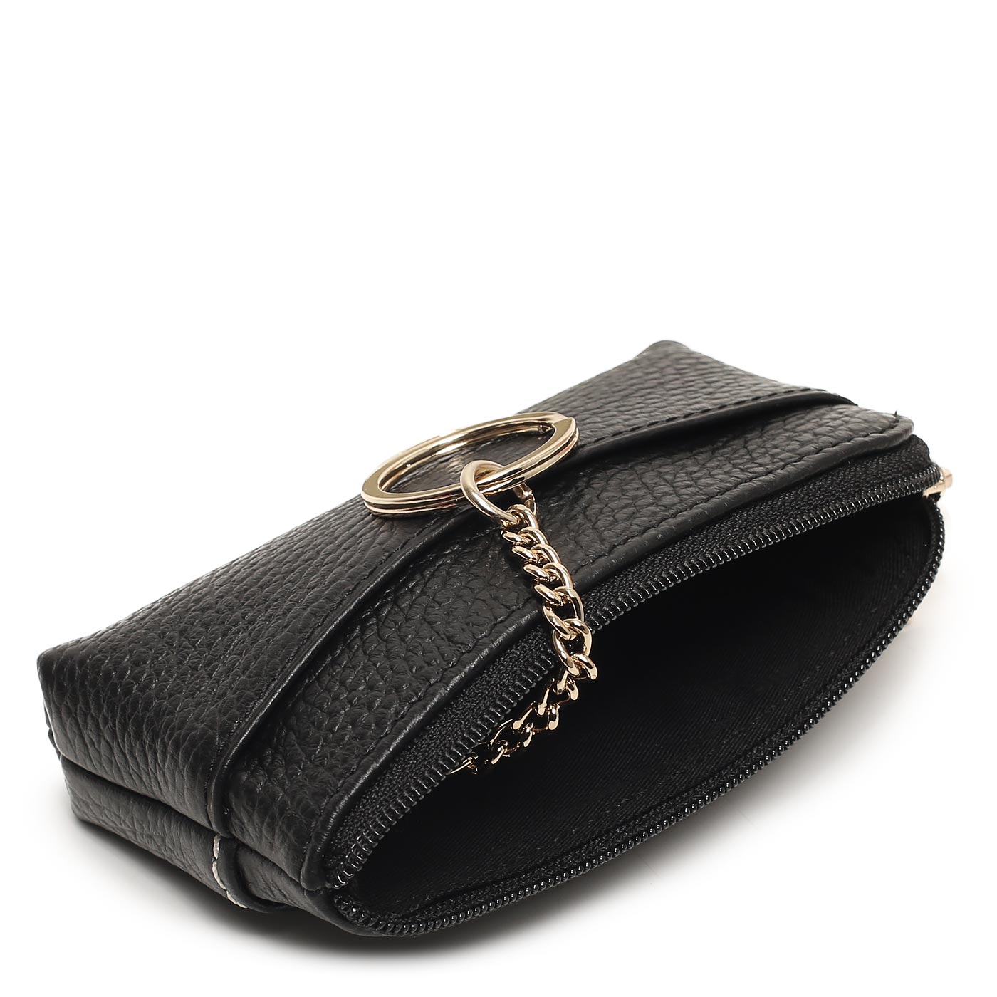 Черная кожаная ключница на молнии