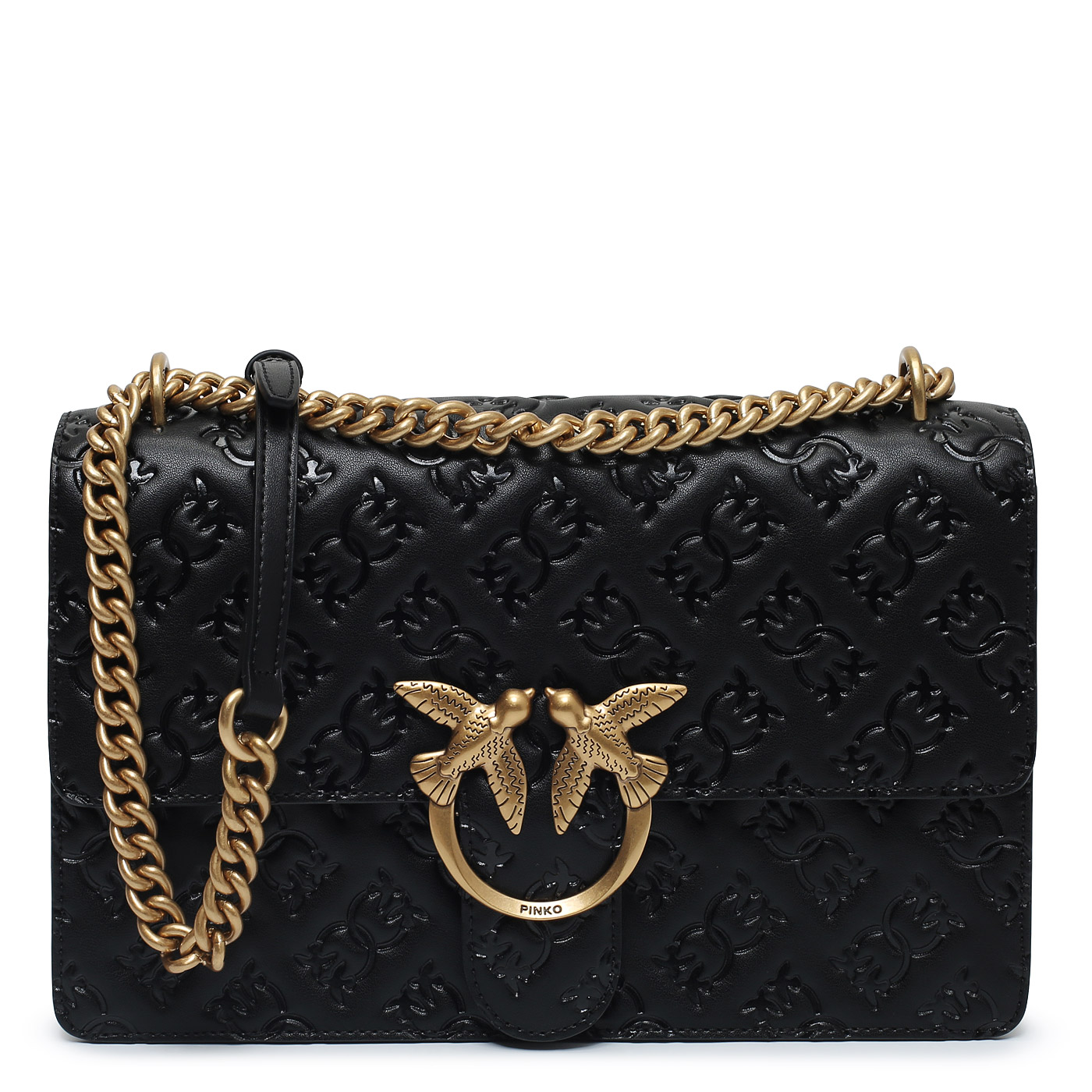 Сумка через плечо с цепочкой Pinko Love One 100941-A1YB/Z99Q_black - 2000558612425 черный натуральная кожа 27 x 16,5 x 7 Цена 43520 руб. купить в интернет-магазине PanChemodan.ru в Новосибирске