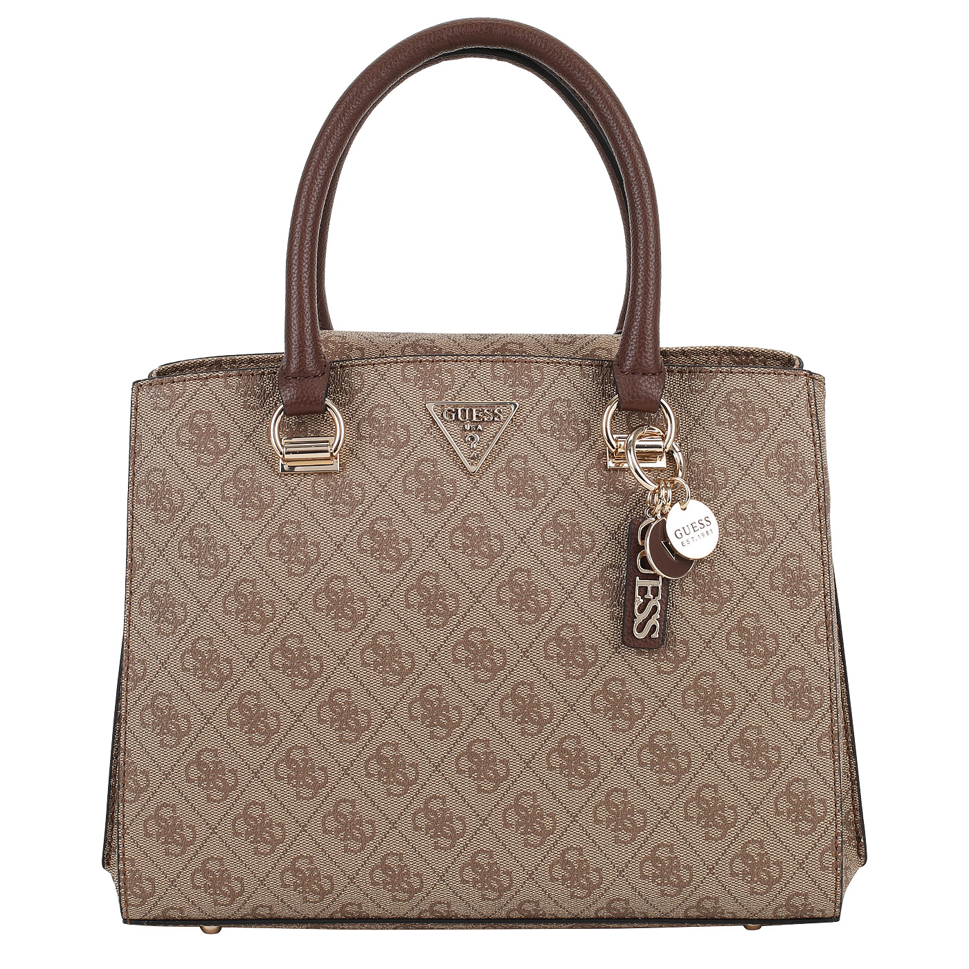 Сумка с двумя ручками Guess Noelle HWBG78 79060_latte logo/brown_pc - 2000558624961 бежевый полиуретан 31 x 23 x 11,5 Цена 21700 руб. купить в интернет-магазине PanChemodan.ru в Новосибирске