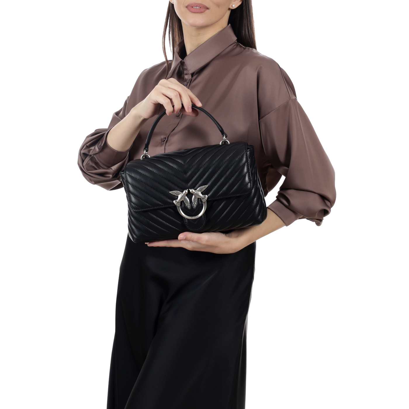 Кожаная сумка Pinko 100043-A0GK/Z99O_black - 2000558612074 черный натуральная кожа 28 x 16 x 7,5 Цена 51520 руб. купить в интернет-магазине PanChemodan.ru в Новосибирске